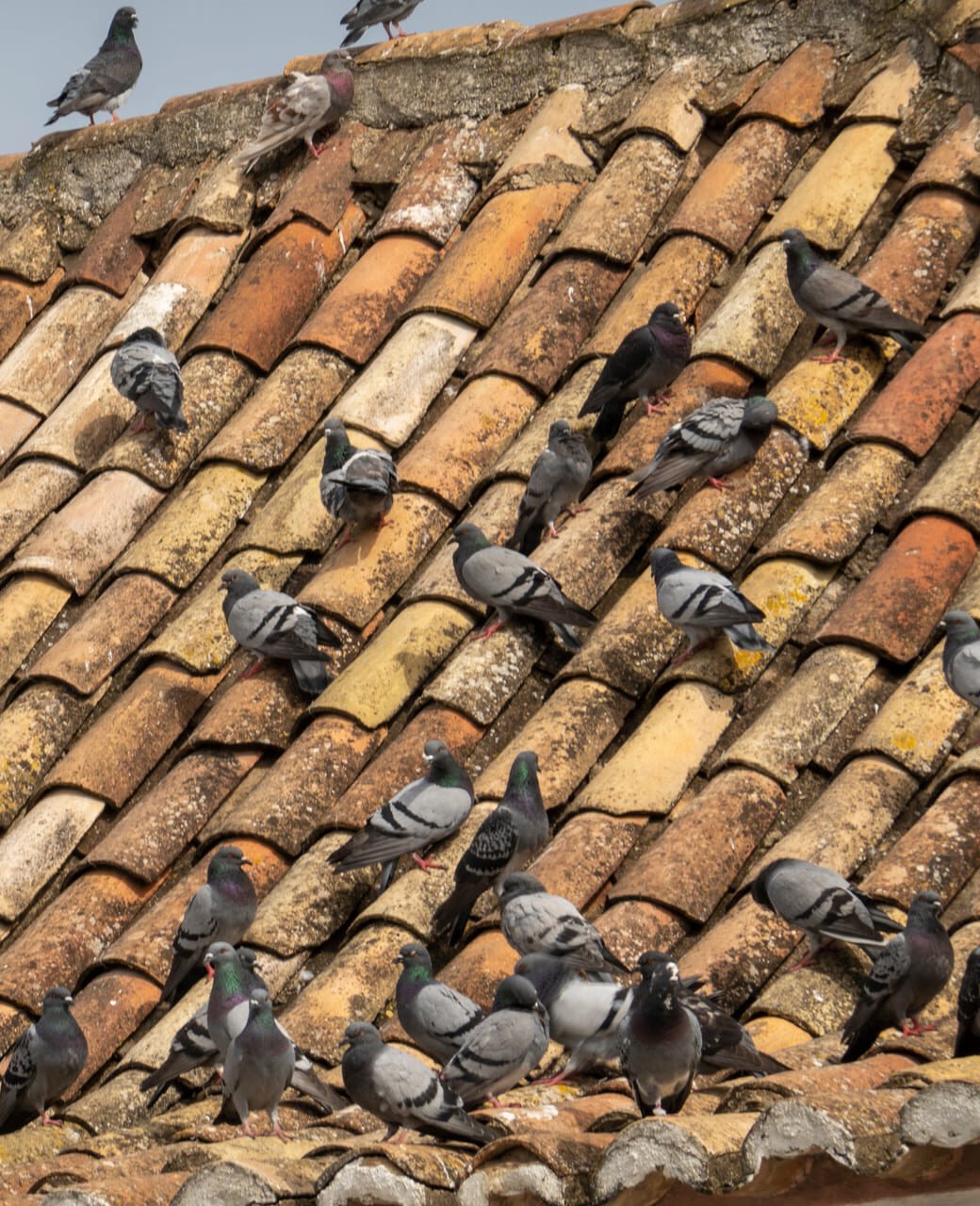 Nossa equipe identifica os pontos críticos onde os pombos se alojam.